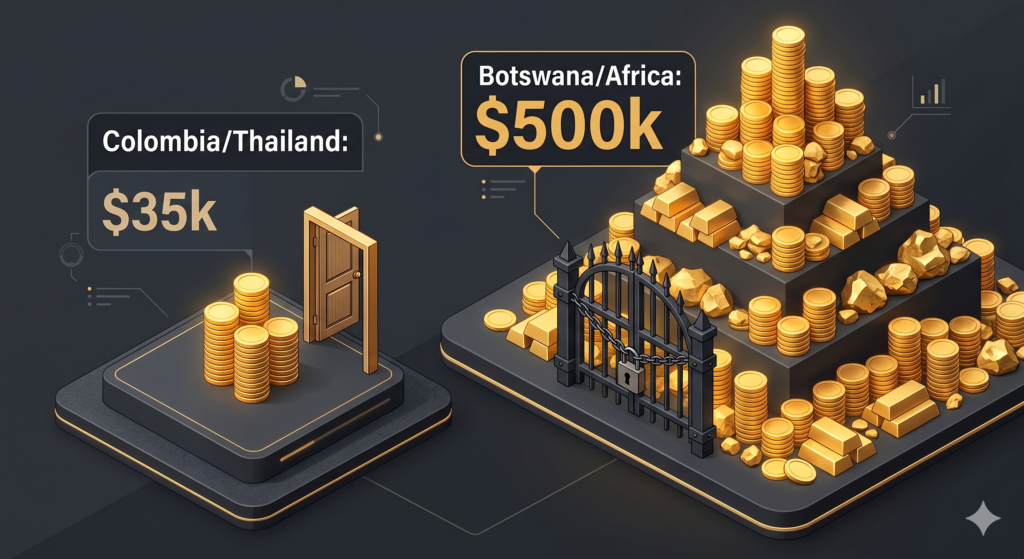 Colombia’s Migrant Investor Visa — the Visa de Migrante Inversionista — requires a minimum investment of approximately 100 SMMLV (the legal minimum wage baseline), which translates to roughly $27,000–$35,000 USD depending on exchange rates. Full legal residency follows within two years. The process is documented, the thresholds are enforced as published, and Medellín has become a recognized hub for Black Diaspora entrepreneurs precisely because the entry architecture does not punish incremental capital deployment.